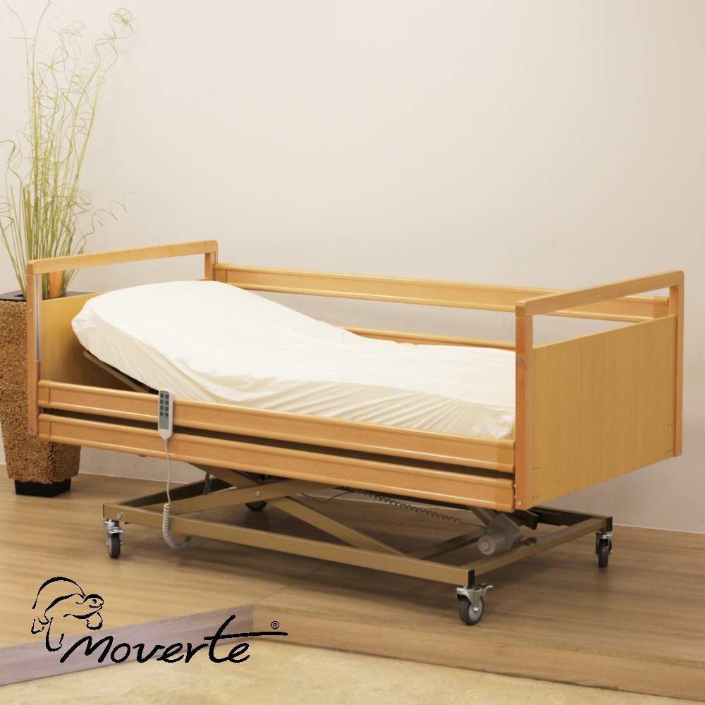 Las camas eléctricas se pueden pedir con barandillas de madera o aluminio resistentes y frenos en las ruedas, reduciendo el riesgo de caídas y facilitando la movilización segura.